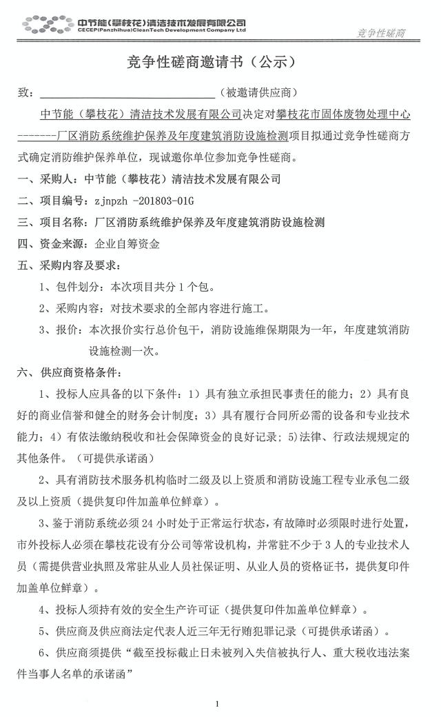 廠區(qū)消防系統(tǒng)維護(hù)保養(yǎng)及年度建筑消防設(shè)施檢測(cè)項(xiàng)目競(jìng)爭(zhēng)性磋商邀請(qǐng)書(公示)