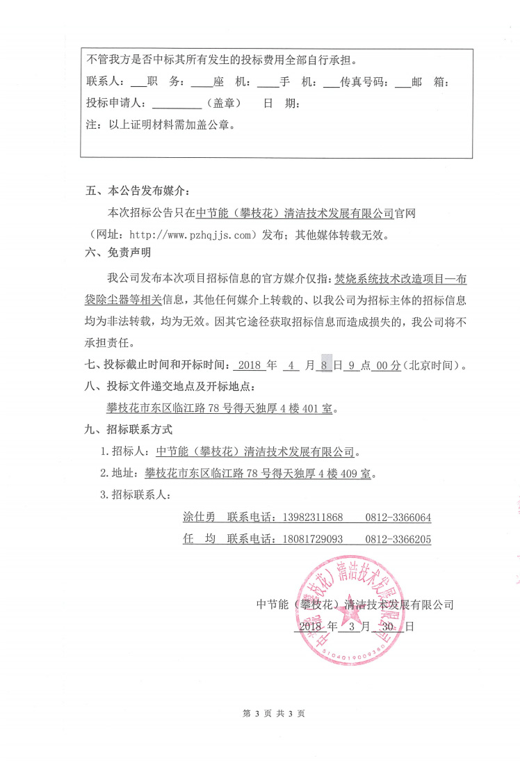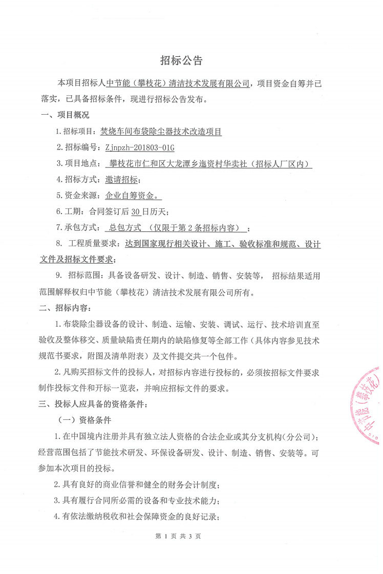 焚燒車間洗滌塔系統技術改造項目招標公告