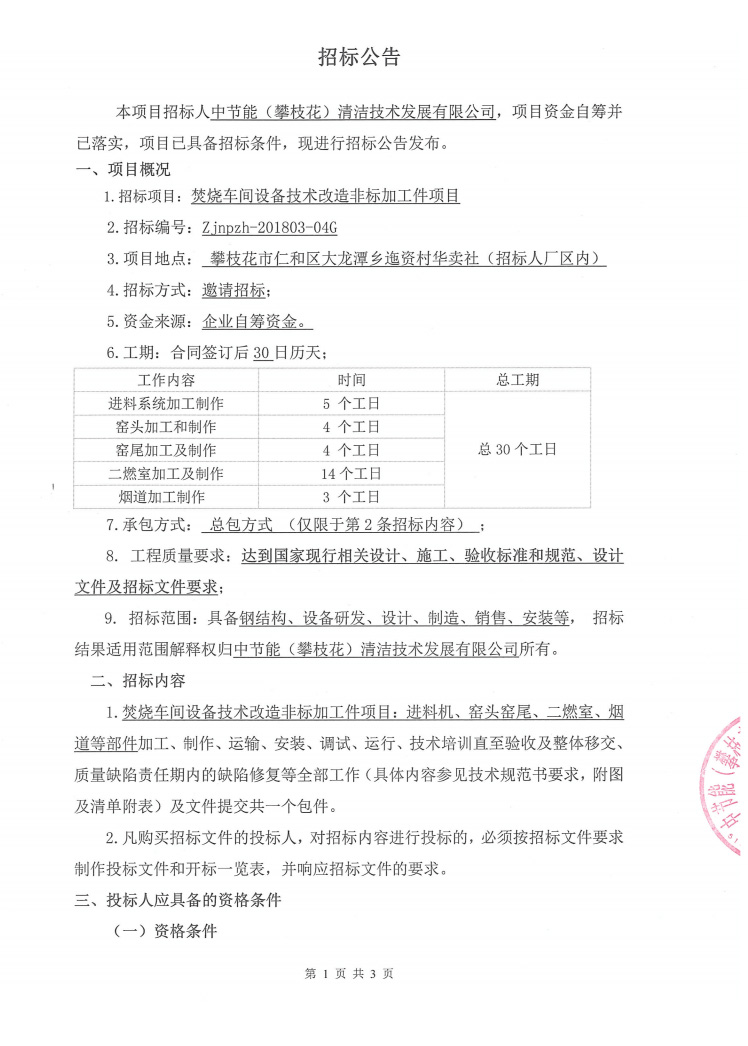 焚燒車間石墨預冷器工藝優化技術改造項目招標公告